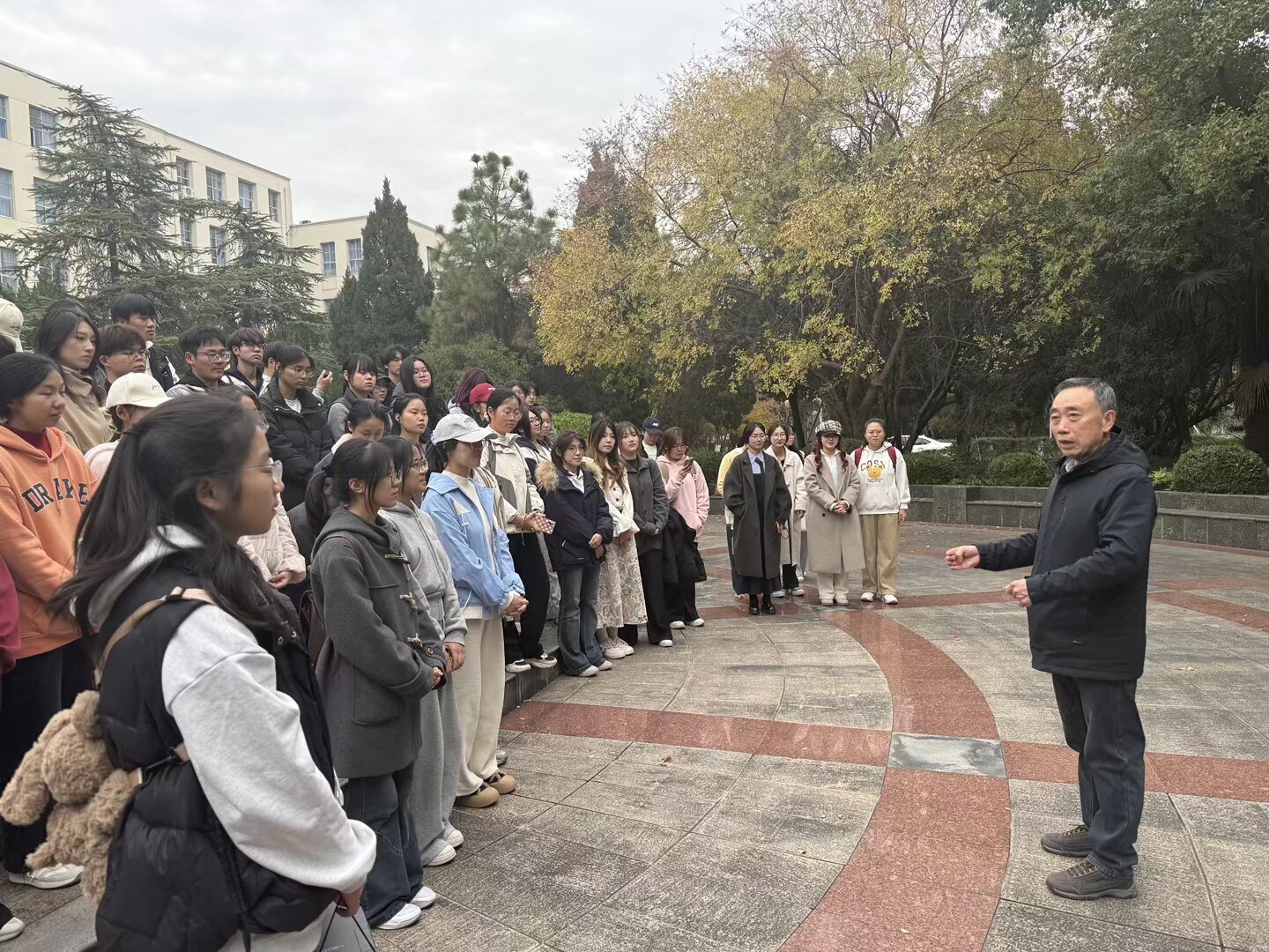 开展“爱校荣院读史”教育,老同志们带领青年漫步校园,在学校每一处风景和建筑的讲解中,融入学校的发展历史故事,让青年们感悟百年师大的深厚沉淀,激发同学们“爱校铭于心,荣校践于行”的思想觉悟。