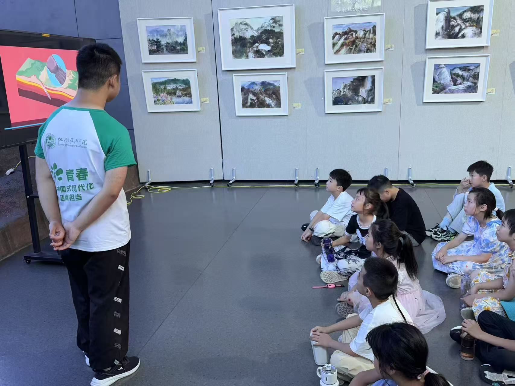 随后,团队成员借助3D模型和视频资料,更加直观地展示了天柱山的奇峰怪石、幽深峡谷等自然奇观。孩子们目不转睛地盯着屏幕和模型,时不时发出惊叹声,在动手操作模型的过程中,进一步加深了对地质知识的理解。