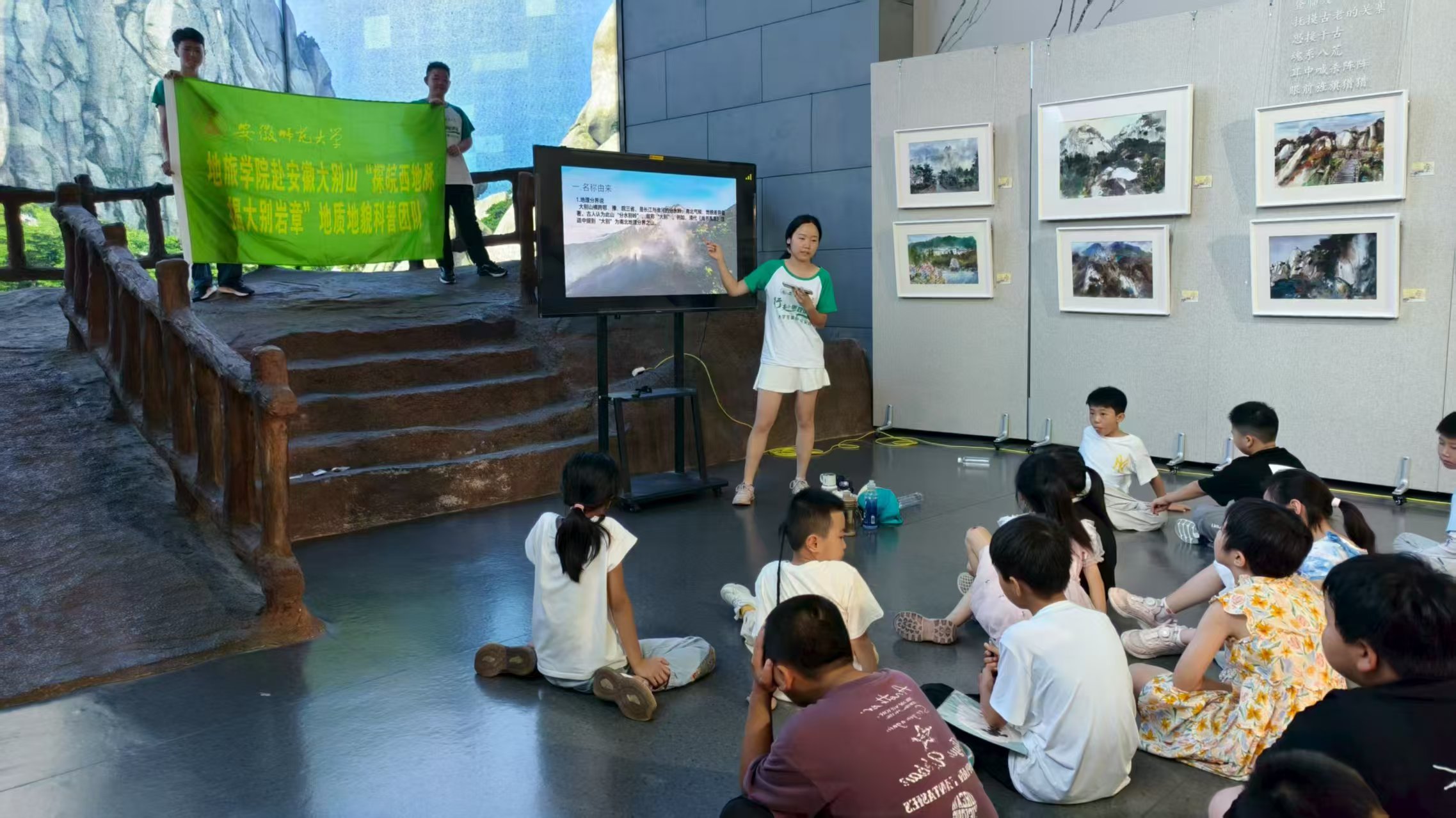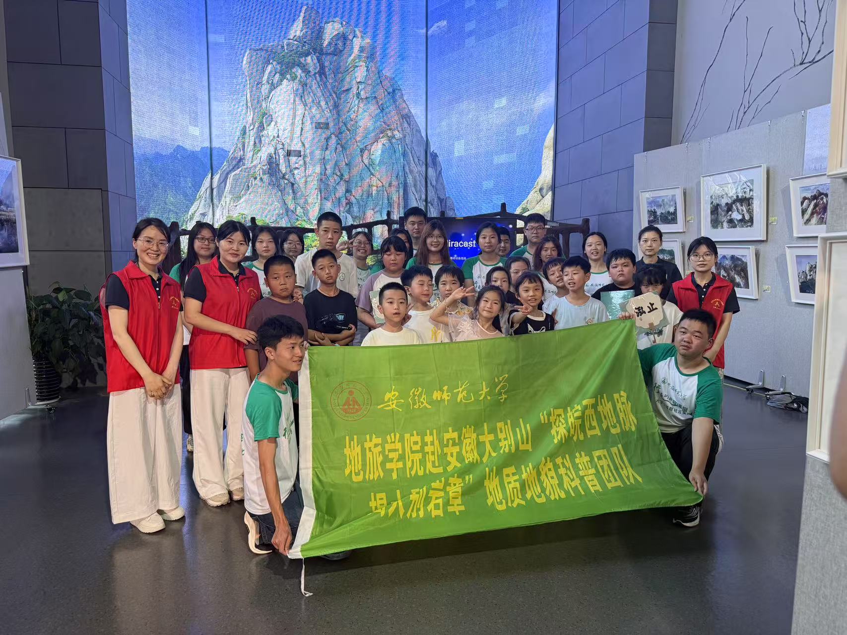 7月7日上午,安徽师范大学milan体育官网赴安徽大别山“探皖西山脉,揭大别岩章”地质地貌科普团队走进天柱山博物馆,为当地小学生带来了一场生动有趣的天柱山地质地貌科普课。此次活动也为团队的暑期社会实践画上了圆满的句号。