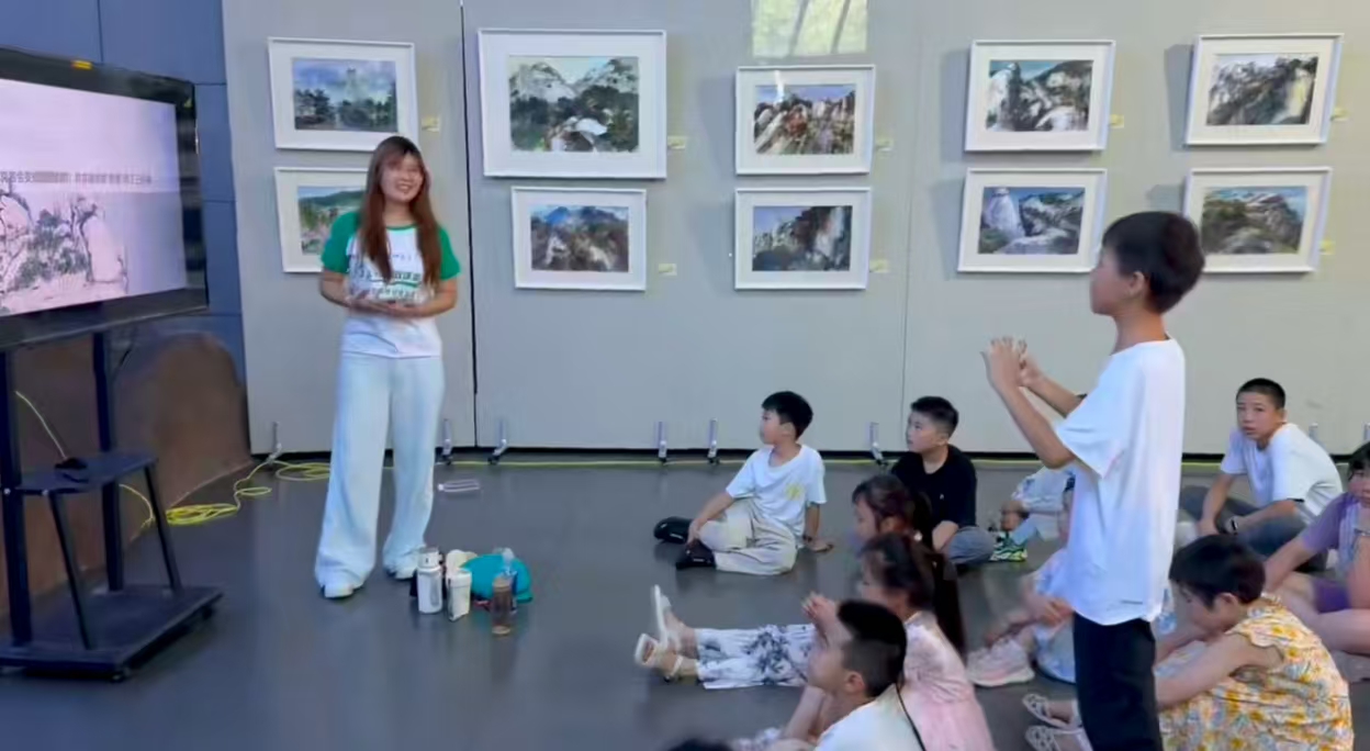 活动伊始,实践团队成员通过精美的图片和通俗易懂的语言,向小学生们介绍了天柱山的形成过程、独特的地质构造以及丰富的地貌景观。在讲解过程中,团队成员们还巧妙地穿插了互动问答环节,“大家知道天柱山的主峰有多高吗?”、“花岗岩是怎么形成的呢?”……一个个有趣的问题激发了孩子们强烈的好奇心,现场气氛热烈,小学生们纷纷举手抢答,稚嫩的声音中充满了对知识的渴望。