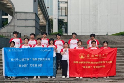 为响应国家乡村振兴战略,践行新时代青年服务社会的使命担当,安徽师范大学地理与旅游学院赴芜湖弋江区马塘新镇“童心圆”支教宣讲团队于2025年7月6日深入芜湖弋江区马塘新镇元山社区,开展以“古今‘粮’缘”为主题的特色支教活动。团队以粮食文化为脉络,设计农耕知识讲解、作物盆栽实践、菜系地理解析等多维度课程,通过 PPT 演示、手工创作、音乐互动等形式,带学生们在识粮、惜粮、赞粮的沉浸式体验中,感受粮食文明的千年传承,让家国情怀在趣味课堂中自然生长。