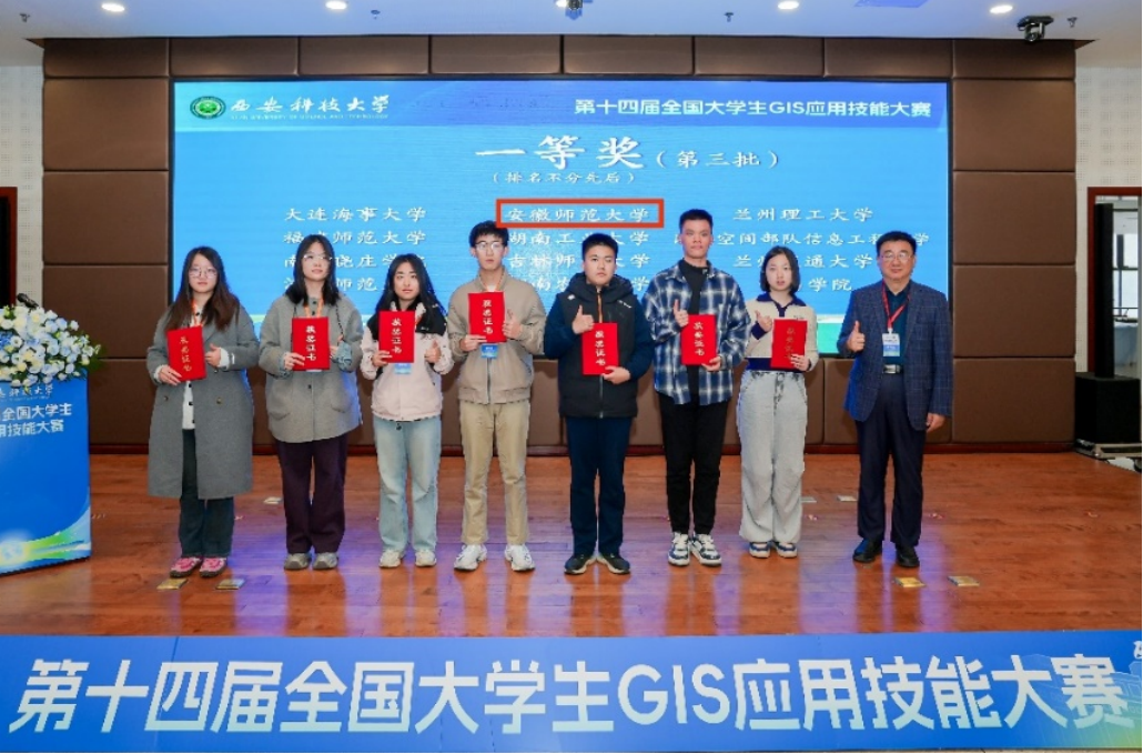 2025年11月16日,从第十四届全国大学生GIS应用技能大赛现场传来喜讯,由我校milan体育官网汪左、宋立生老师指导,地理信息科学专业2023级本科生孙慧文、陈子璇、朱睿文、宋明谕四位同学组成的参赛团队,凭借扎实的专业基础、出色的技术应用能力和稳定的赛场发挥,一举夺得大赛一等奖,充分展现了我校学子在GIS领域的卓越专业素养与创新实践能力。